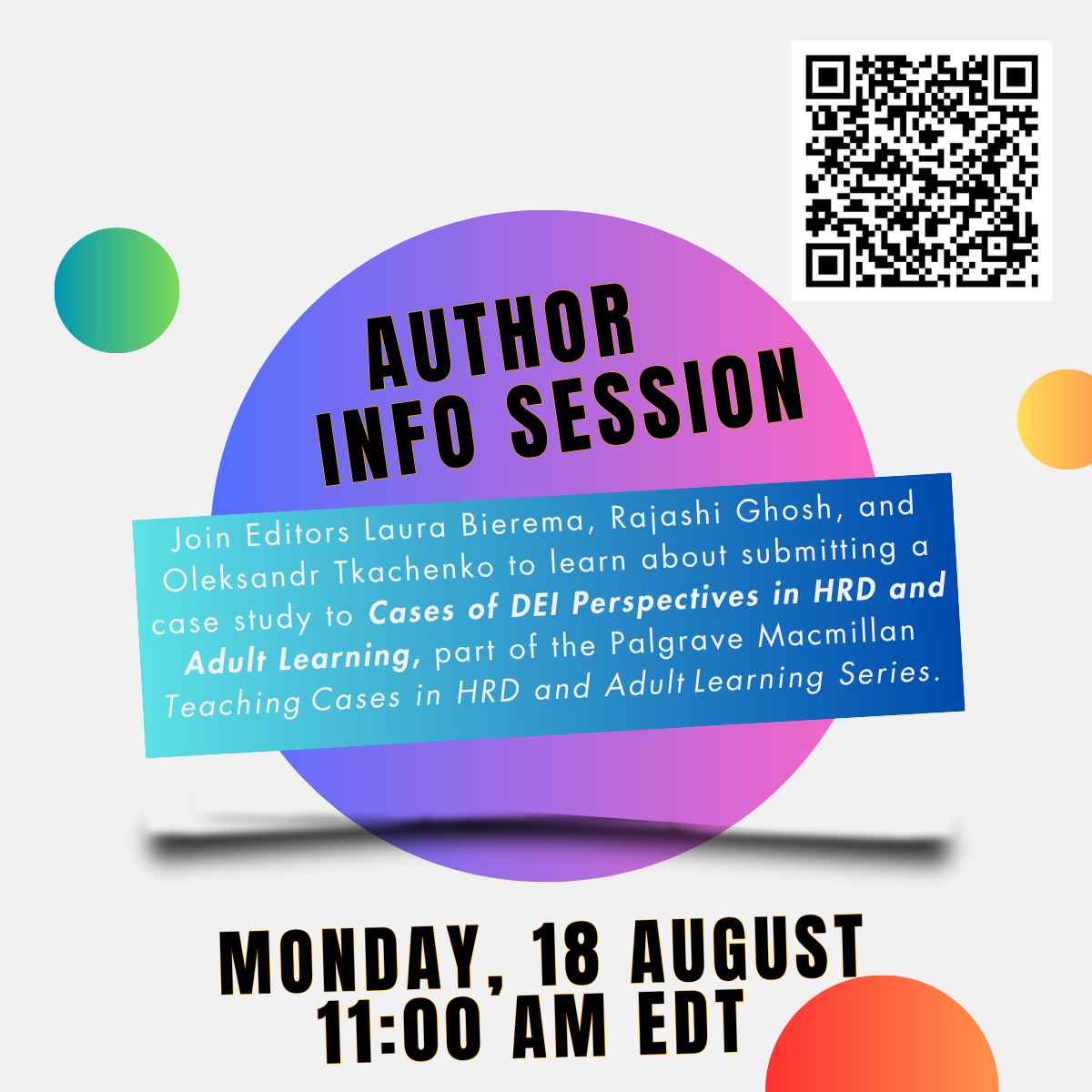 Drs. Laura L. Bierema, Rajashi Ghosh, and Oleksandr Tkachenko are seeking authors for an upcoming Palgrave Macmillan volume, Cases of DEI Perspectives in HRD and Adult Learning, part of the Teaching Cases in HRD and Adult Learning series.