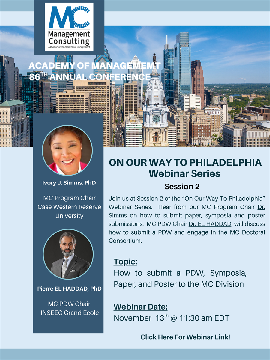 Don't miss out on the upcoming How to Submit a PDW and Engage in the Doctoral Consortium - Management Consulting Division session on Nov 13, 2025 from 11:30 to 12:30 (ET).