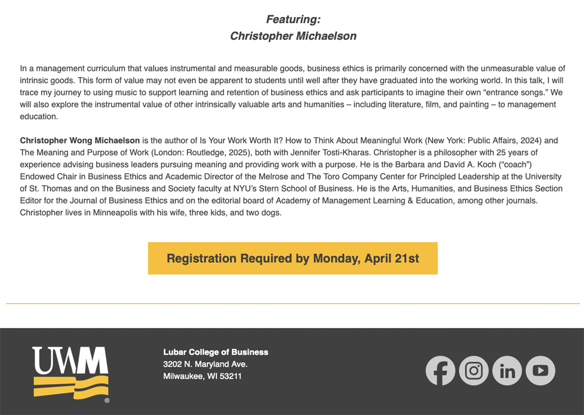 Please join us for a webinar on Teaching Business Ethics with the Arts and Humanities. Registration link: