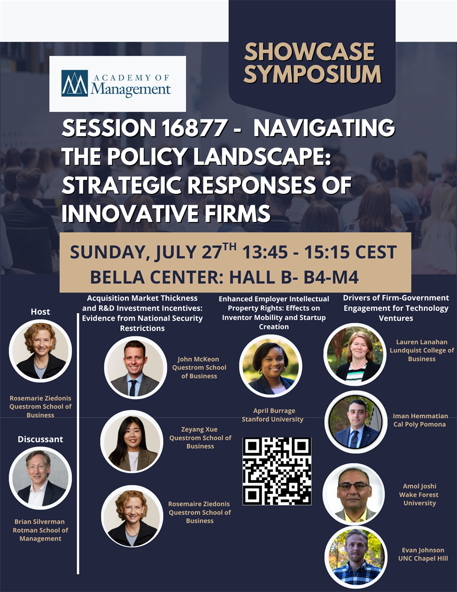 Please join us on Sunday, July 27, from 13:45 to 15:15 CEST in Bella Center Hall B-B4-M4 for the Showcase Symposium titled : Navigating the Policy Landscape: Strategic Responses from Innovative Firms.
